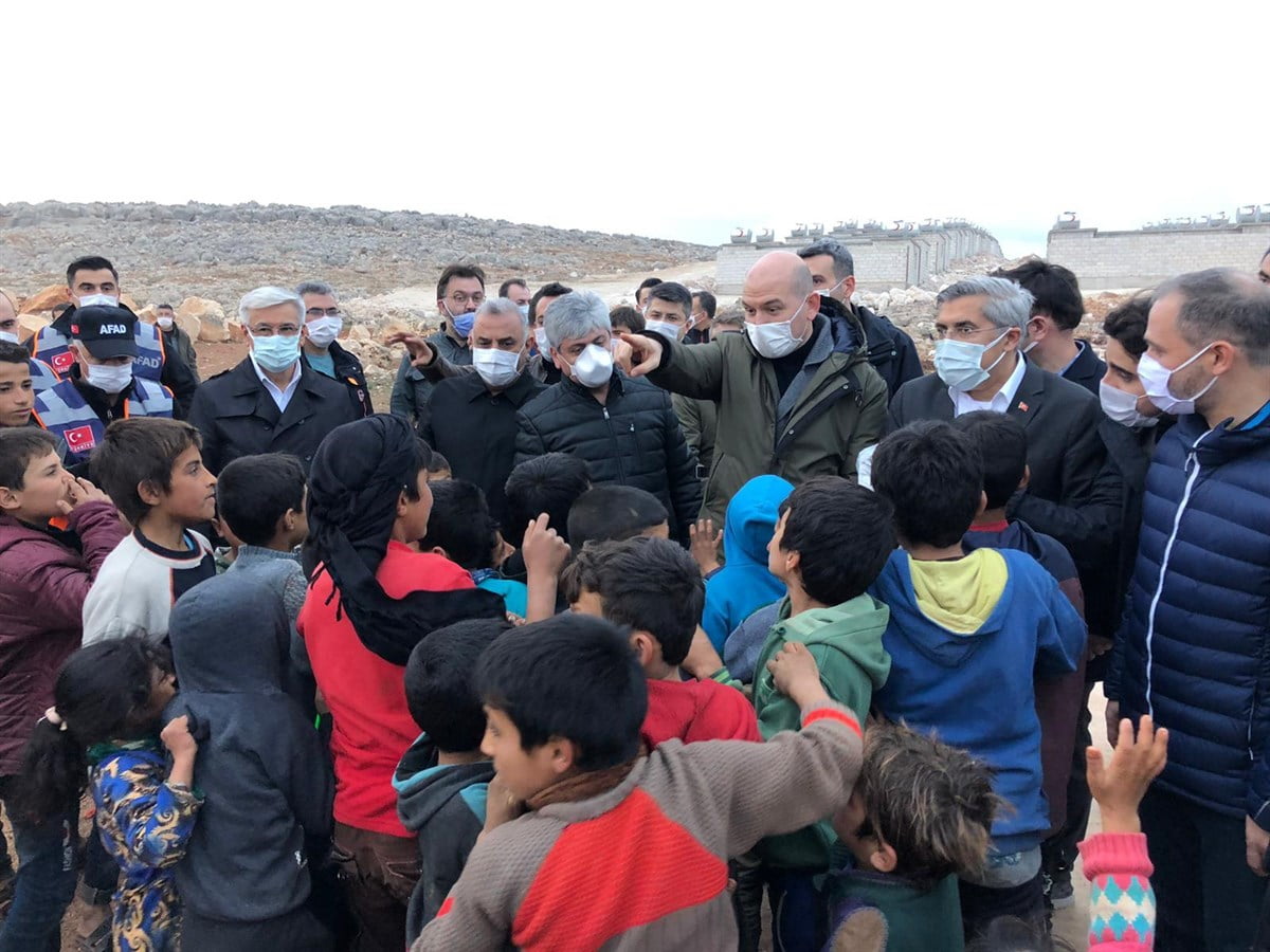 01 Ocak 2021 Cuma günü Suriye’nin İdlib bölgesinde Cumhurbaşkanı Sayın Recep Tayyip Erdoğan’ın himayelerinde, Valiliğimiz ve AFAD koordinasyonunda yapımı devam eden briket evlerde incelemelerde bulunan İçişleri Bakanı Sayın Süleyman Soylu yetkililerden inşa süreciyle ilgili bilgi aldı. Daha sonra İdlib’de briket evlerde yaşayan Suriyelileri ziyaret eden İçişleri Bakanı Sayın Süleyman Soylu, aile bireyleri ile bir süre sohbet etti ve Suriyeli ailelere Cumhurbaşkanı Sayın Recep Tayyip Erdoğan’ın selamını da ileterek, çocuklara oyuncak ve çikolata dağıttı.