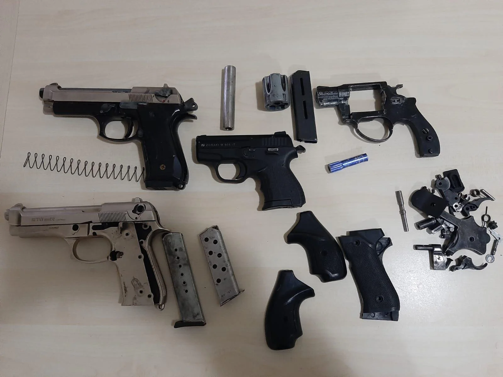 ◾ Bu tabancalara ait çeşitli çap ve ebatta 30 adet çeşitli tabanca parçaları, ele geçirilmiş, suç unsuruna el konulmuş, gerekli yasal işlemler başlatılmıştır