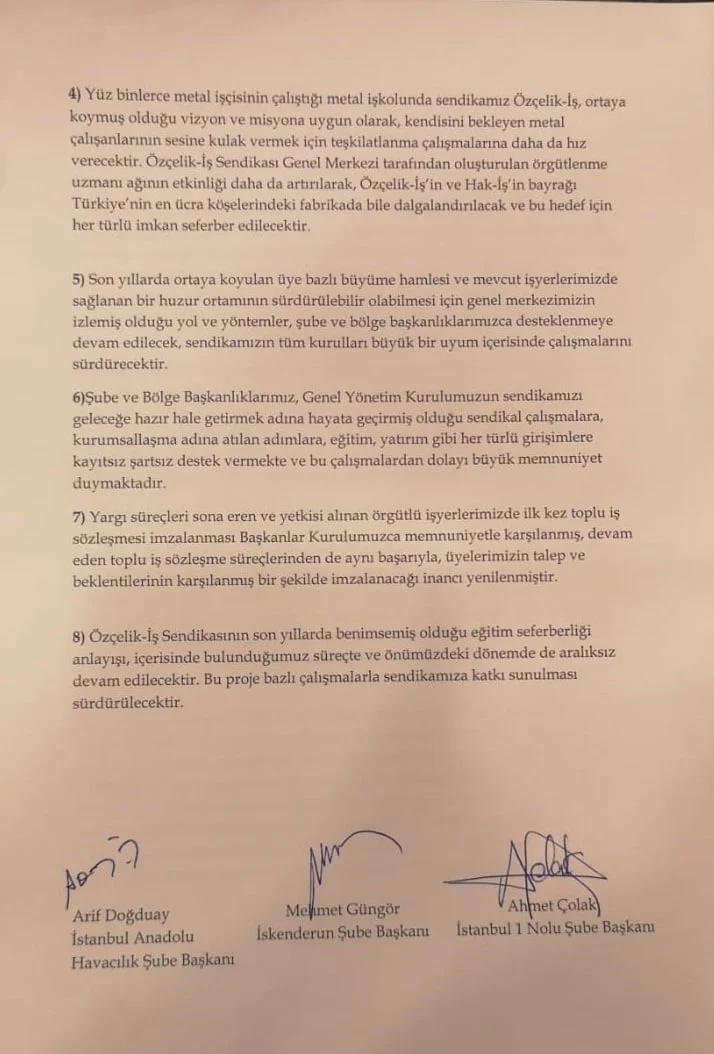 Toplantıda Özçelik-İş Sendikasının aydınlık yarınları ile ilgili karşılıklı görüş alışverişinde bulunuldu.