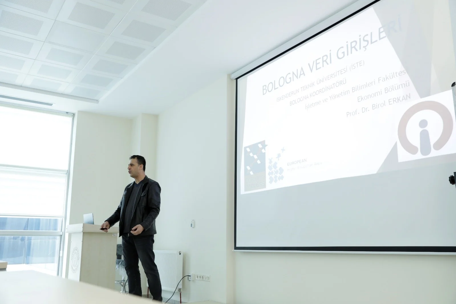 İskenderun Teknik Üniversitesi’nde (İSTE) Fakültelerin, Yüksekokulların ve Meslek Yüksekokullarının Bologna Süreci eğitimleri devam ediyor. Sürece ilişkin ikinci eğitim 17 Mart Çarşamba günü İSTE Bologna Koordinatörü Prof. Dr. Birol Erkan tarafından Turizm Fakültesi’nde gerçekleştirildi. Eğitime İSTE Rektör Yardımcısı ve Turizm Fakültesi Dekanı Prof. Dr. Mustafa Yüksek ve Turizm Fakültesi öğretim elemanları katıldı.