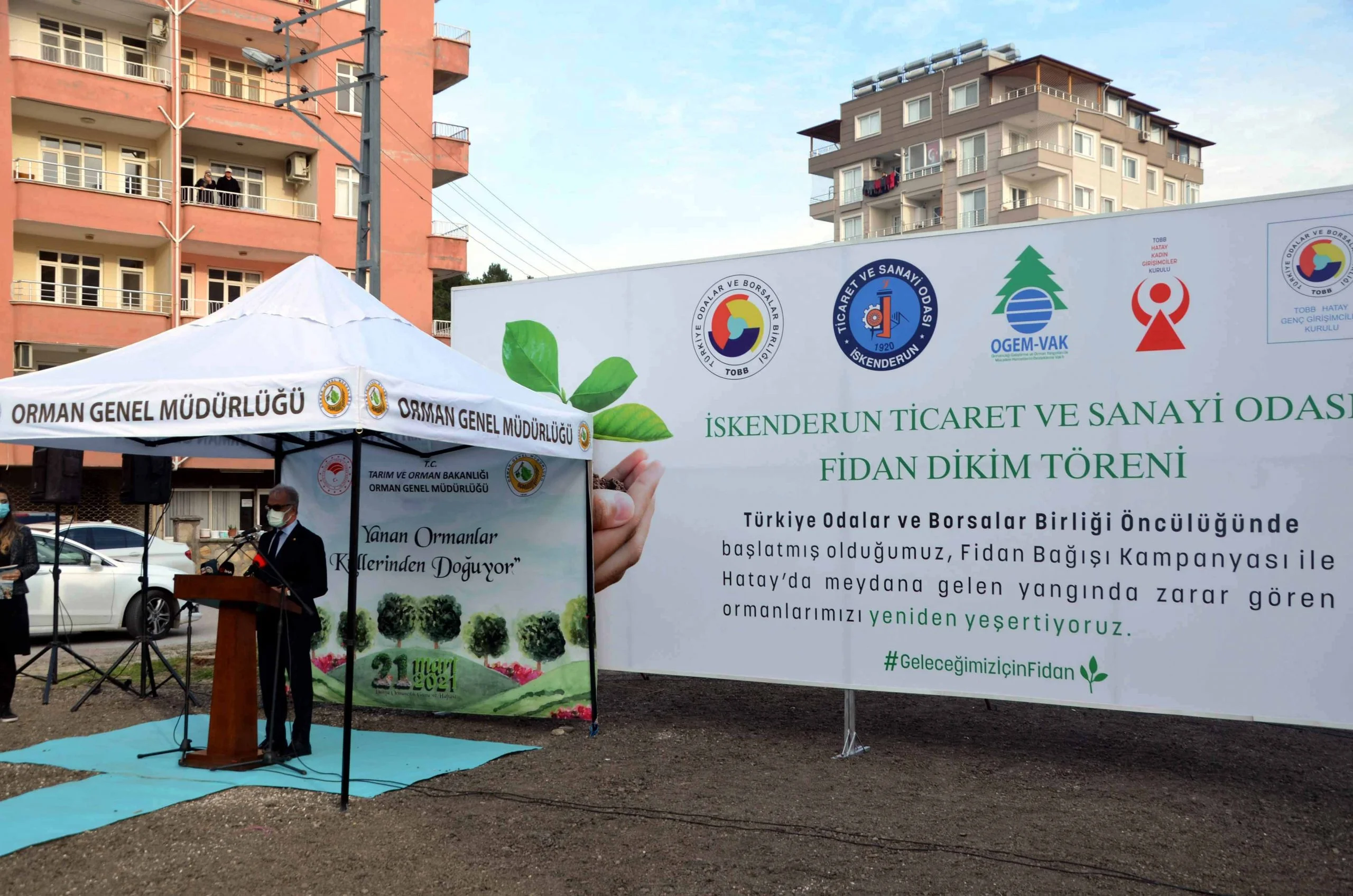 Hatay’ın İskenderun Belen ve Arsuz ilçelerinde yaşanan yangınlarda zarar gören ormanlık alanların ağaçlandırma çalışmalarına TOBB’un önderliğinde Oda ve borsalardan destek geldi.
