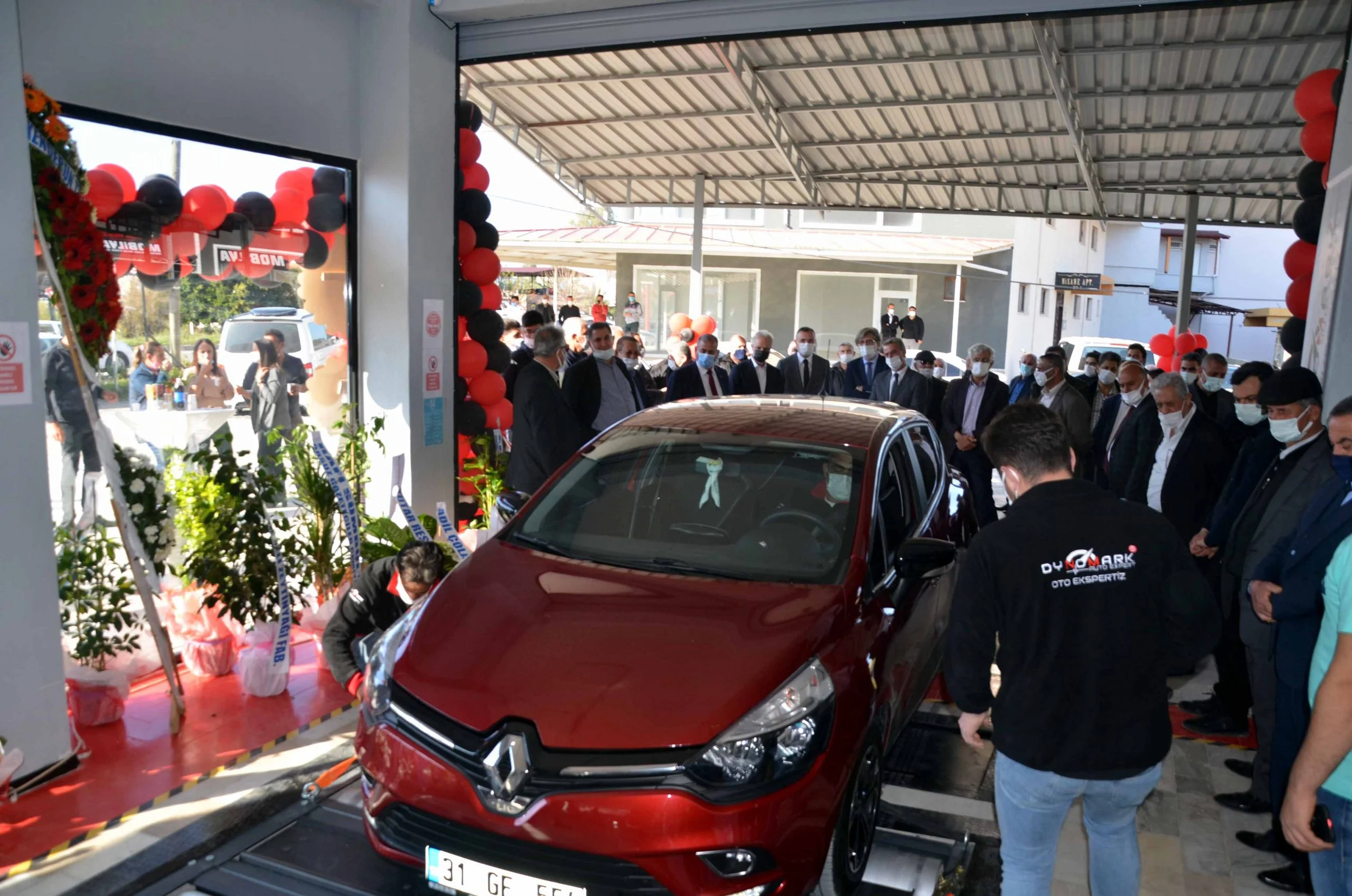 Yapılan konuşmaların ardından Dynomark Auto Ekspertiz’in açılış kurdelasını Arsuz Kaymakamı Musa Sarı, Arsuz Belediye Başkanı Asaf Güven, İTSO Başkanı Levent Hakkı Yılmaz, ARİAD Başkanı Adnan Ağır, İş yeri sahibi Orhan Özkan birlikte kestiler.