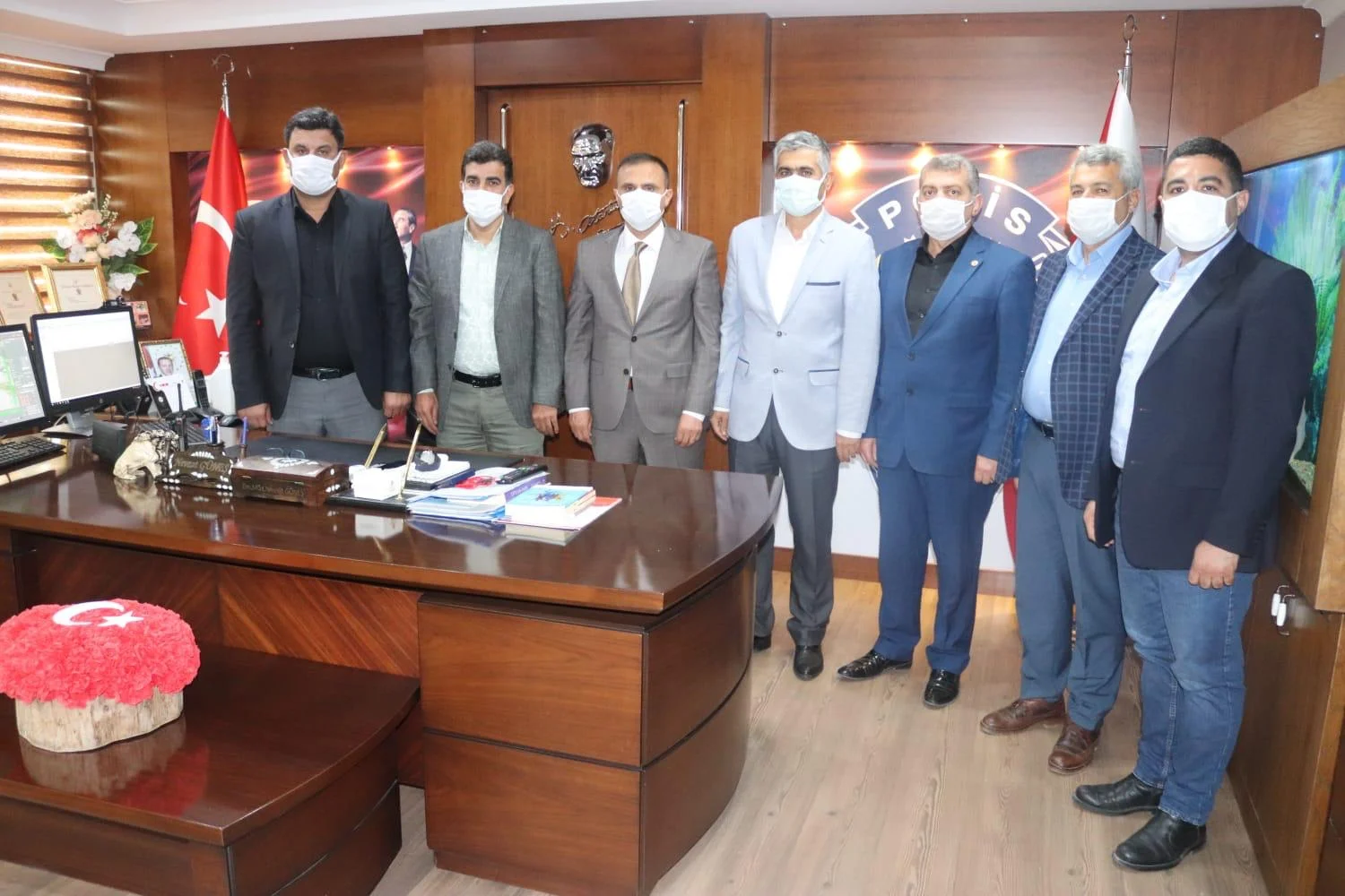 Özçelik-İş Sendikası İskenderun Şube başkanı Mehmet Güngör yönetim kurulu ile birlikte polis haftası dolayısıyla İskenderun emniyet müdürü Nevzat Güneş’i makamında ziyaret ederek polis haftasını kutladı.
