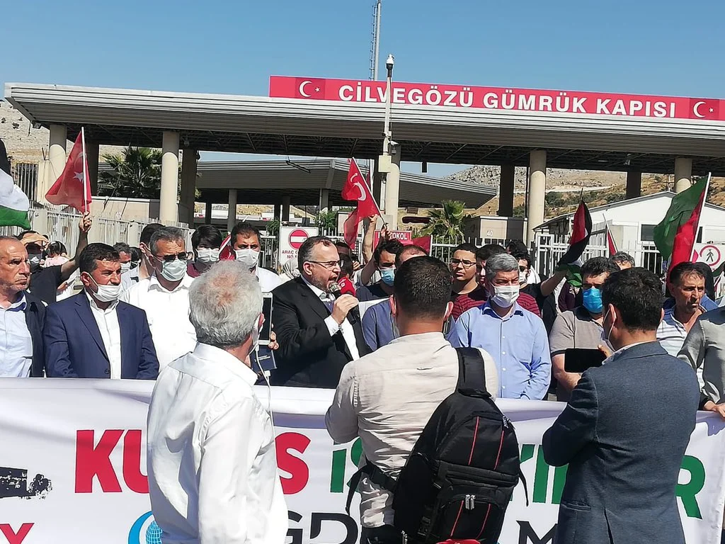 Saadet Partisi GİK Üyesi Doç. Dr. Necmettin Çalışkan da “Burada yüreği Filistin için atanlar olarak, İsrail’e yakın sınır noktasında ‘yeryüzünde Müslümanımlar kardeştir’ demek için toplandık.