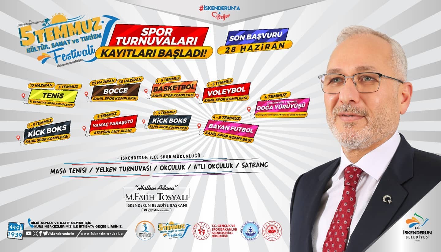 İskenderun Belediye Başkanı Fatih Tosyalı, 5 Temmuz Kültür, Sanat ve Turizm festivali çerçevesinde spor etkinliklerinin düzenleneceğini belirtti.