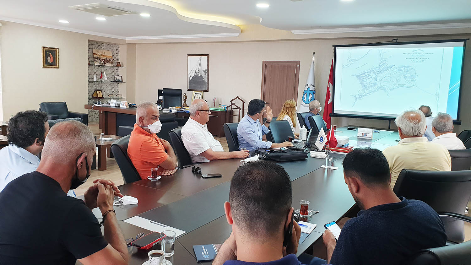 Hataylı Osmanlılar, Doğu Akdeniz’de Bir Liman Kenti: İskenderun (1914-1919) ve Tarsuslu Osmanlılar kitaplarının yazarı Kent Tarihi Uzmanı Doç. Dr. Naim Ürkmez İMEAK Deniz Ticaret Odasında Yönetim Kurulu Başkanı Kemal Kutlu, Meclis Başkanı Adnan Yener ve Yönetim- Meclis Üyelerinin hazır bulunduğu toplantıda İskenderun’un Osmanlı döneminden bu yana gelişimini anlattı.