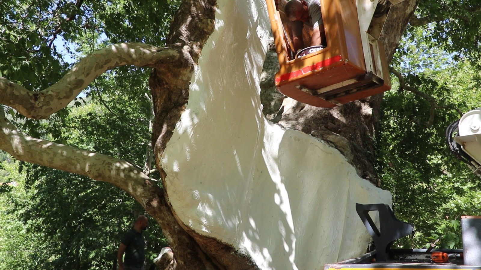 Yıldız, “Uzun yıllar içerisinde ağacın gövdesinde oluşan kovuğa hastalık ve zararlılara karşı ilaçlama yaptık. Ardından dış etkenlerden oluşabilecek zararlılara karşı telleme sistemi ve özel bir macunla gövdede oluşmuş açıklıkları kapatarak restore işlerini tamamladık. Hedefimiz asırlık çınarlarımızın gelecek nesillere daha sağlıklı bir şekilde aktarılmasını sağlamaktır” ifadelerini kullandı.