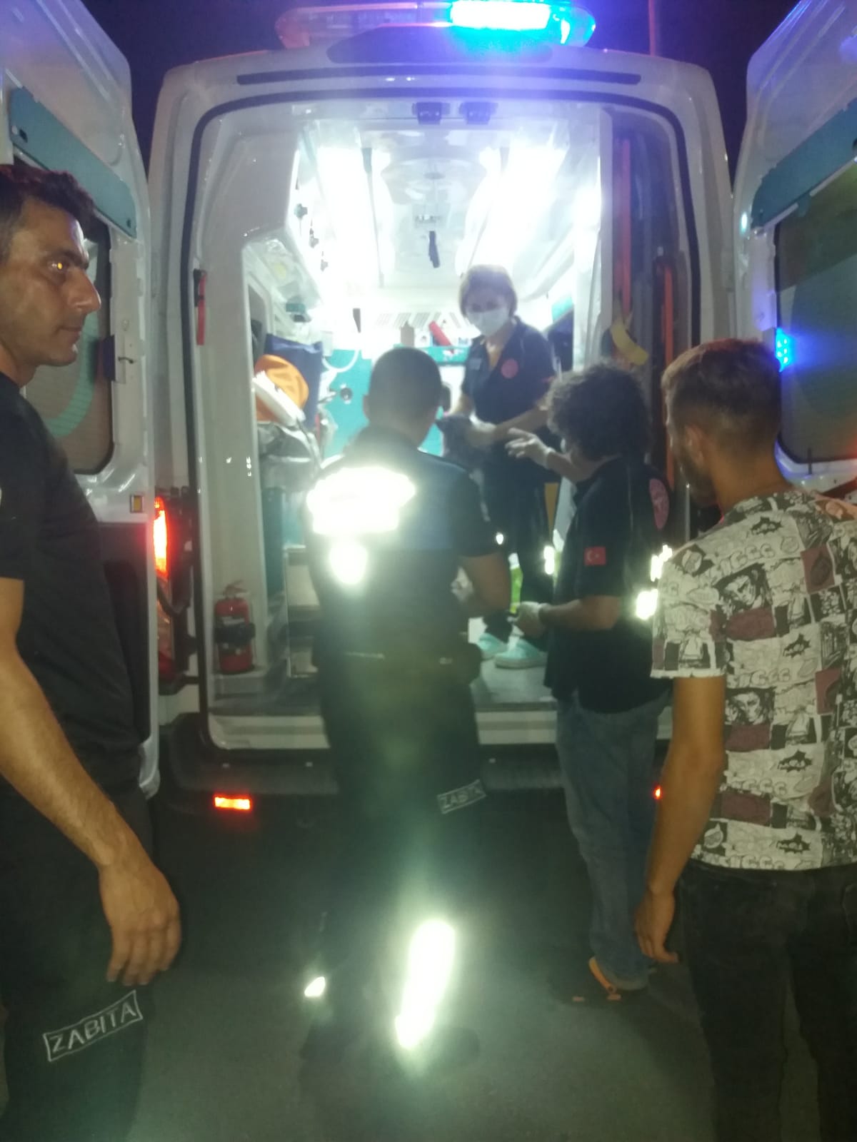 Zabıta ekipleri, olayın hemen ardından sağlık ekiplerine haber verdi. Kısa sürede olay yerine gelen sağlık ekipleri, ilk müdahaleyi yaptıktan sonra G.E. isimli kadını hastaneye kaldırdı.