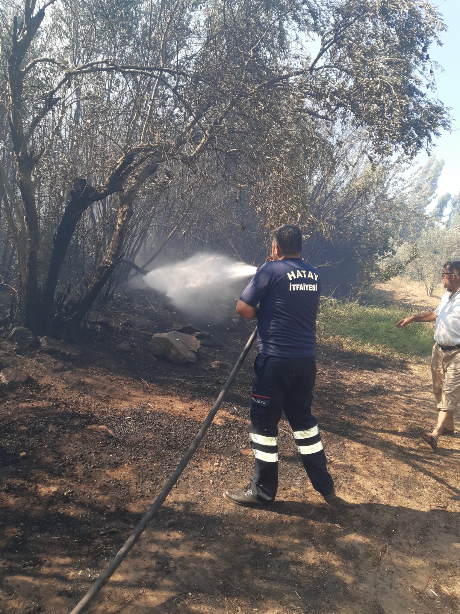 Yangına, 15.15’te Hatay Büyükşehir Belediyesi İtfaiye ekipleri ilk olarak 5 araç ve 20 personelle müdahalede bulundu. Orman İşletme Müdürlüğü ekipleri arazöz ve helikopter takviyesi yaparak yangını söndürdü.