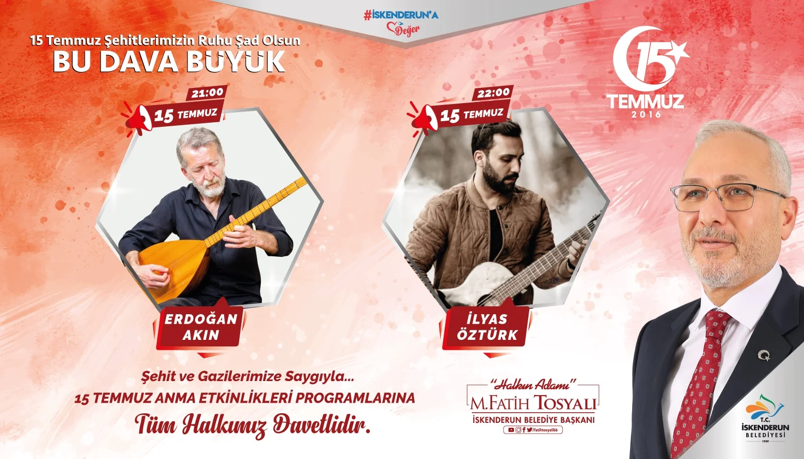 15 Temmuz 2016 darbe girişiminde şehit düşen ve gazi olan vatandaşlarımız, İskenderun’da da anılacak.