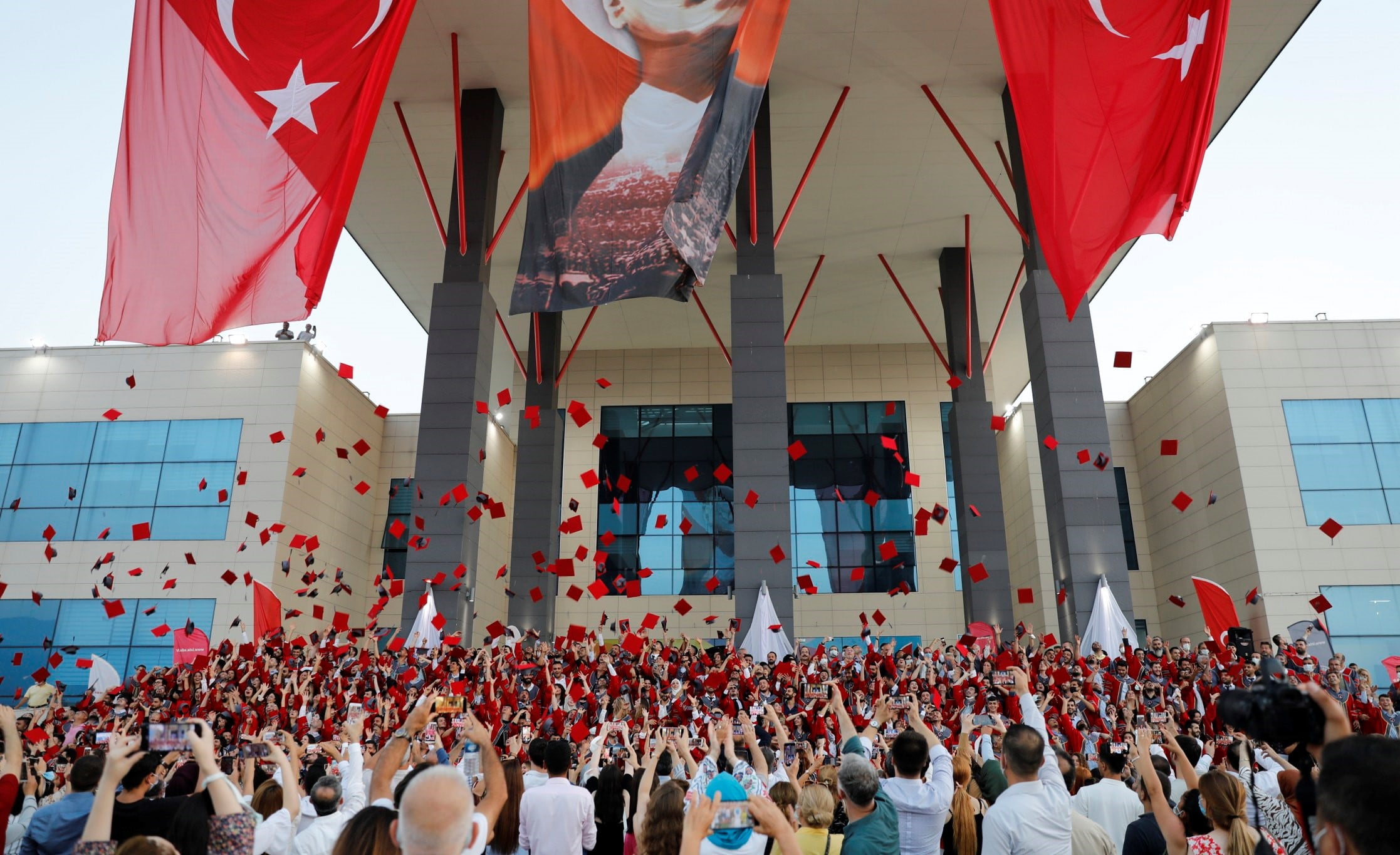İskenderun Teknik Üniversitesi’nde (İSTE) 16 Temmuz Cuma akşamı mezuniyet heyecanı yaşandı. 2020- 2021 akademik yılı mezuniyet töreni İSTE Merkez Kampüsü’nde gerçekleştirildi. Törende fakülteler, yüksekokullar, konservatuvar, enstitü ve meslek yüksekokullarından mezun olan öğrenciler keplerini havaya atarak, üniversite hayatlarını başarıyla tamamlamanın mutluluğunu yaşadı. Açık havada düzenlenen mezuniyet törenine İSTE Rektörü Prof. Dr. Tolga Depci, İskenderun Kaymakamı İskender Yönden, İskenderun Belediye Başkanı M. Fatih Tosyalı, İlçe Emniyet Müdürü Nevzat Güneş, İSTE Rektör Yardımcıları Prof. Dr. Selçuk Mıstıkoğlu, , Prof. Dr. Mustafa Yüksek ve Prof. Dr. Meltem Eken, İSTE akademik ve idari personelleri, öğrenciler ve aileleri katıldı.