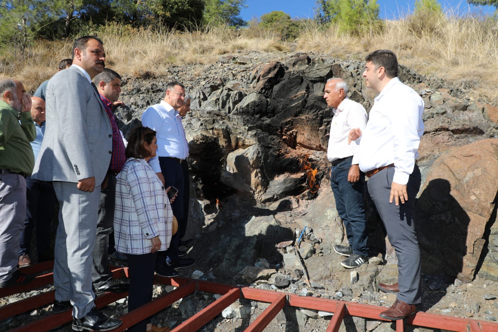 Lütfü Savaş ve beraberindekiler kahvaltıdan sonra Arsuz’un önemli turistik merkezlerinden biri olan ve 250 yıllık geçmişe sahip olduğu bilinen Kurtabağı Mahallesi’ndeki Yanartaş bölgesini ziyaret etti.