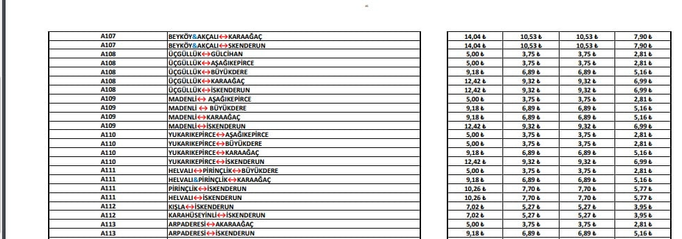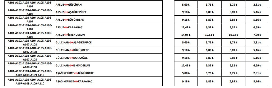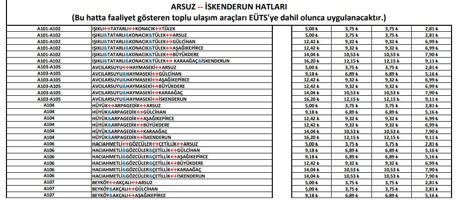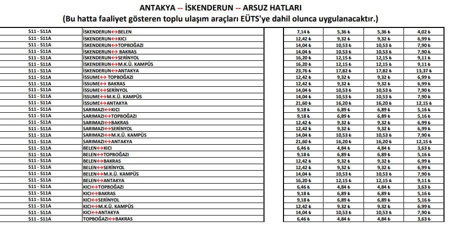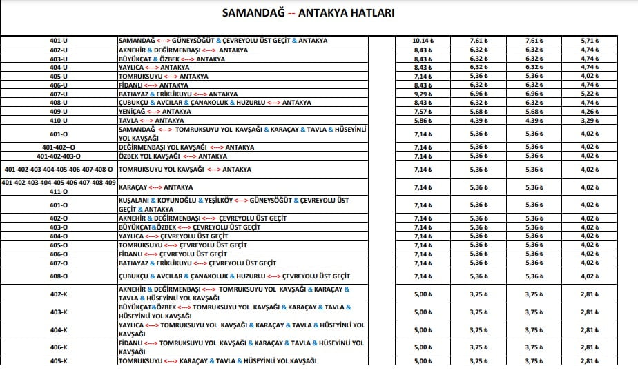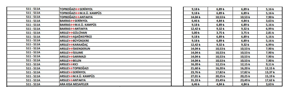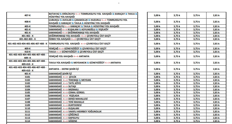 Hatay Büyükşehir Belediyesi yetkilileri, fiyat güncellemesi 26.01.2022 tarihli ve 2022/25 sayılı UKOME kararı ile yapıldığını duyurdu.