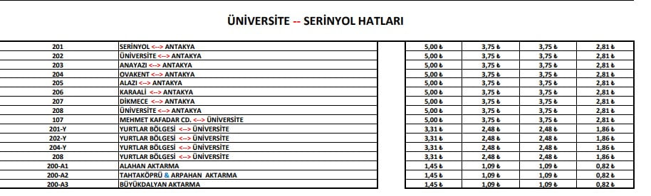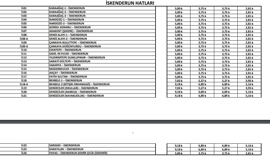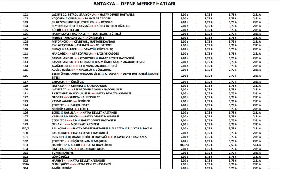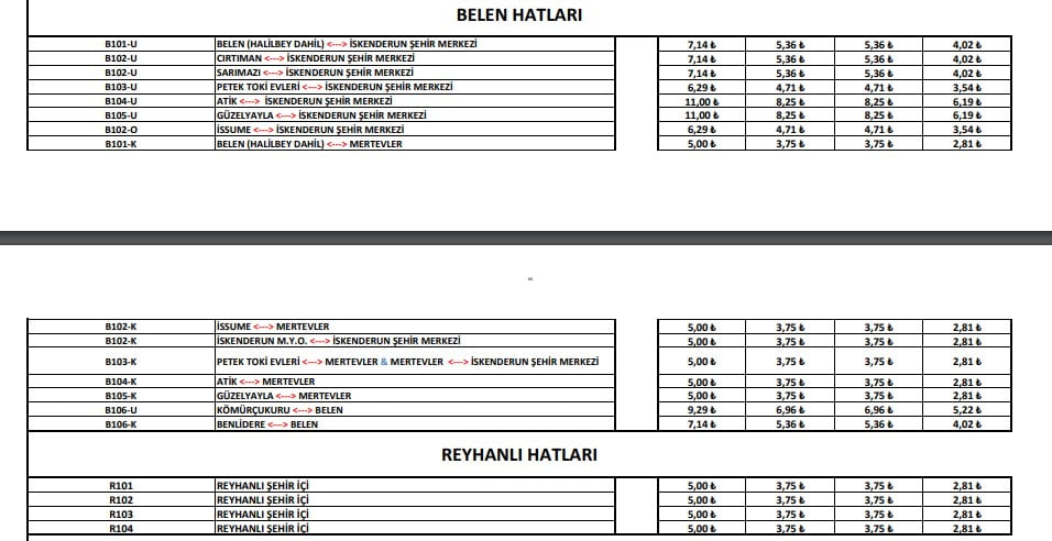 Hatay genelinde hizmet veren toplu taşıma araçlarının fiyatları güncellendi.