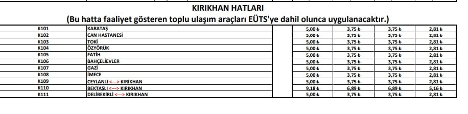 Yeni fiyat tarifesinin 2 Şubat Çarşamba gününden itibariyle geçerli olacak. Vatandaşlar güncel fiyat tarifelerine Hatay Büyükşehir Belediyesinin resmi İnternet sitesinden, Hatay Kart mobil uygulamasından ulaşabilecek. açıklandı .
