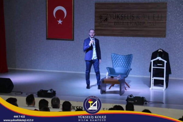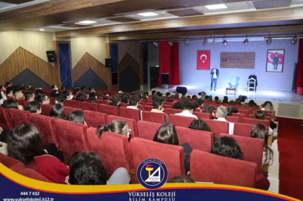 Kariyer günlerinin ilk toplantısı, Hatay Barosu avukatlarından Av. Sami Tunç DAĞTEKİN’in sunumuyla başladı. Lise öğrencilerimizin hayli ilgi gösterdiği sunum son derece verimli oldu. Öğrencilerimizin sorular da yönelttiği interaktif ortamda öğrencilerimiz, daha sağlıklı bölüm seçebilmek adına bilgilenmiş oldular. Yöneticilerimizin teşekkürleri ve belge takdimleriyle toplantı tamamlandı.