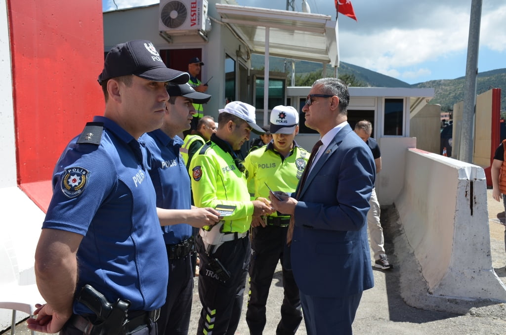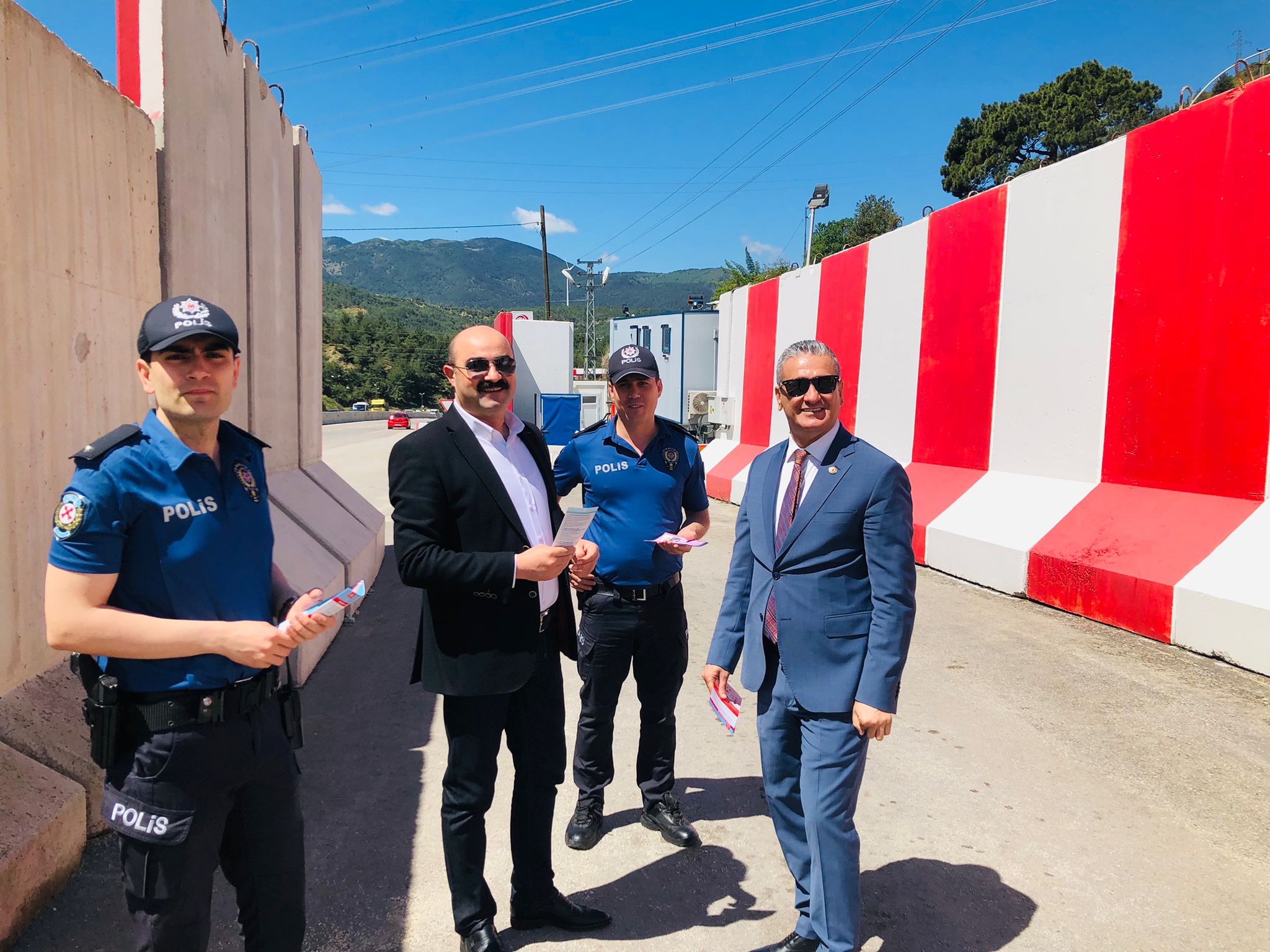 Vekili Metin Eker ve görevli polislerle birlikte, Belen polis kontrol noktasında, karayolunu