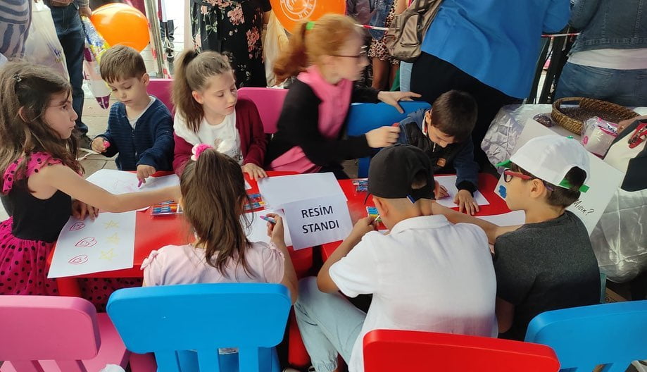 boyamalarıyla, pamuk şeker, balon ve lolipop dağıtarak çocukları mutlu