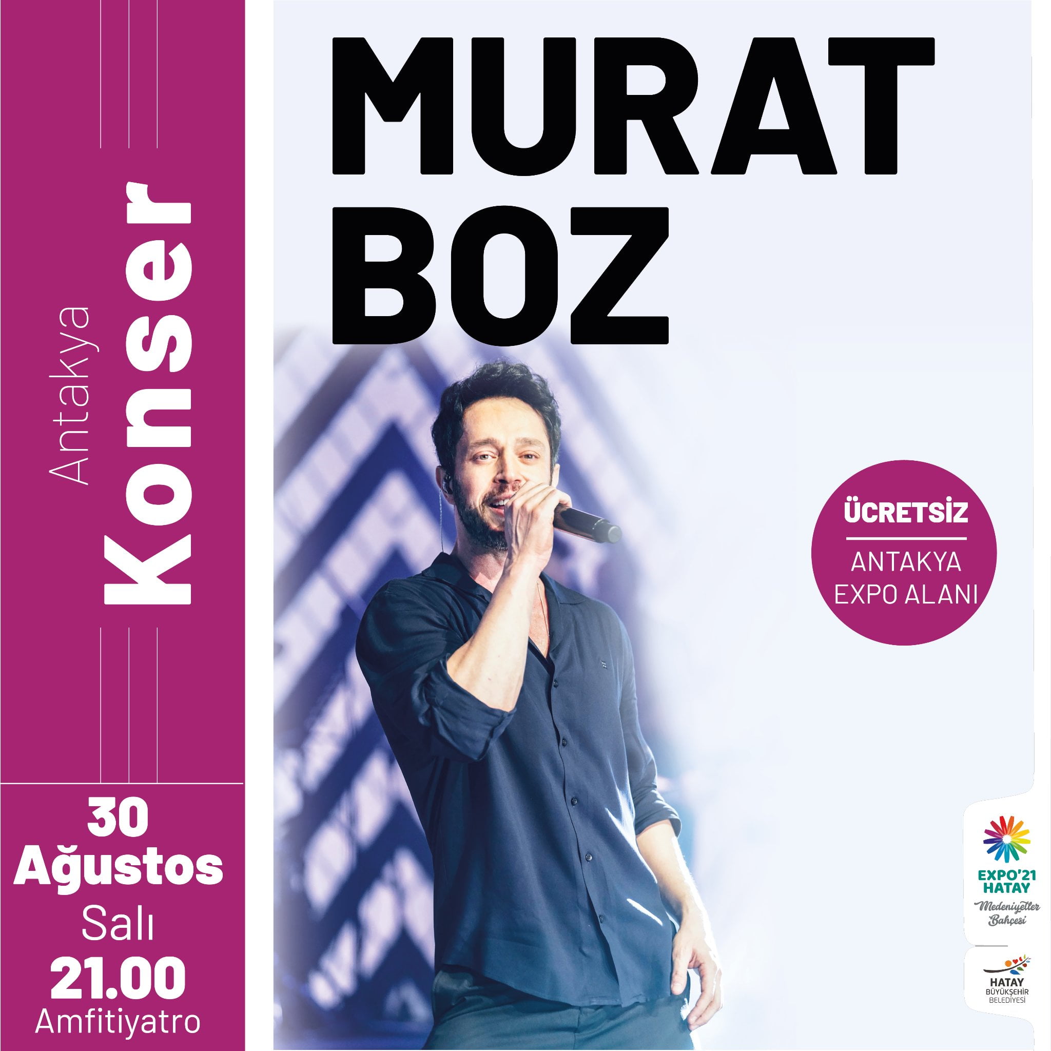 Başarılı şarkıcının dillerden düşmeyen şarkıları ve muhteşem sahnesiyle unutulmaz bir gece geçirmek için herkesi Expo Antakya Amfitiyatro’ya bekliyoruz.