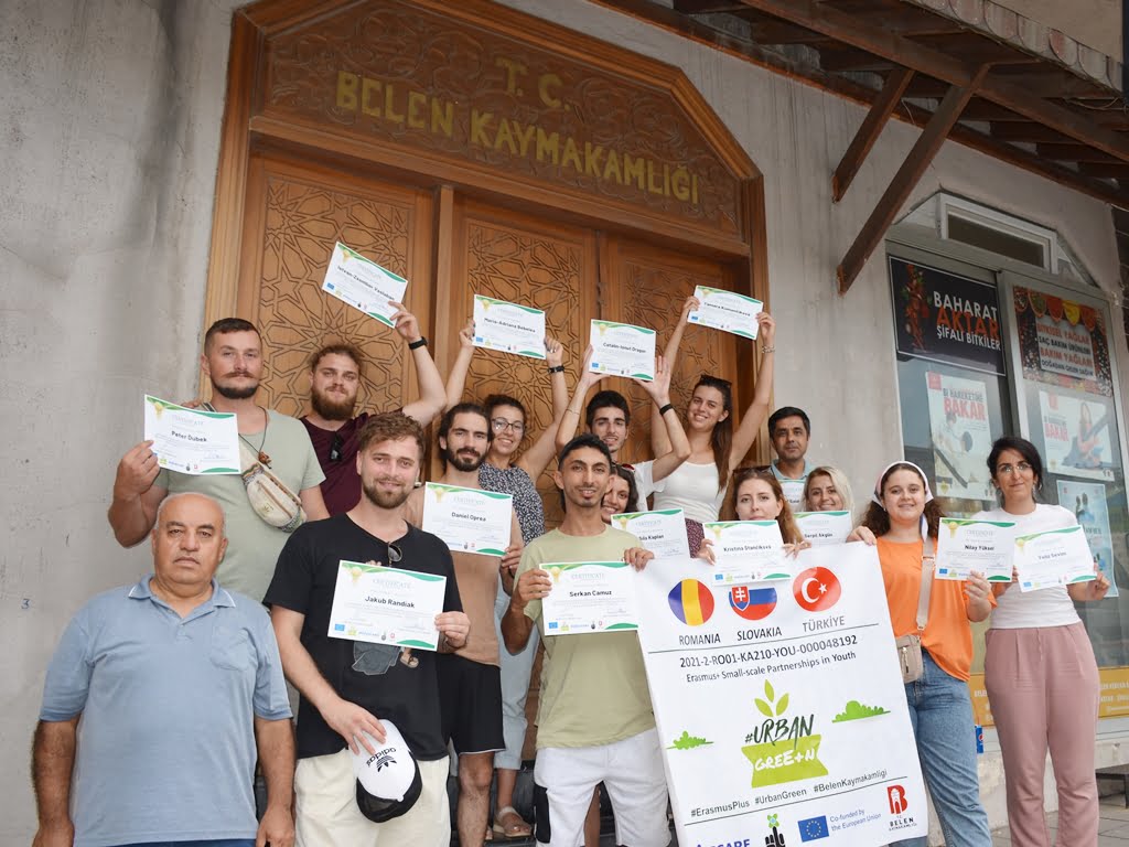 Belen Kaymakamlığının ev sahipliğinde Türkiye, Romanya ve Slovakya ortaklığıyla yürütülen Erasmus+ “urban greE+n” projesinin 19-22 Ağustos 2022 tarihleri arasında ülkemizde gerçekleştirilen çalışma ziyareti tamamlandı. Proje kapsamında katılımcılar Hatay’da doğayı koruma ve çevre temalı yapılan çalışma mekanlarını ziyaret ettiler.