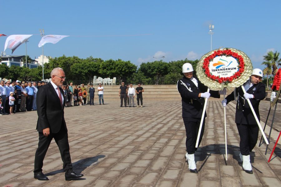 Çelenk sunma törenine İskenderun Kaymakamı Murat Sefa Demiryürek, İskenderun Belediye Başkanı Fatih Tosyalı, Garnizon Komutanı 39. Mekanize Piyade Tugay Komutanı Tuğgeneral Hakan Tutucu, İskenderun Deniz Üs Komutanı Tuğamiral Murat Fırat, İskenderun Cumhuriyet Başsavcısı Muhammet Emin Ünalan,siyasi parti temsilcileri askeri ve sivil erkan ve sivil toplum kuruluşu temsilcileri katıldı.