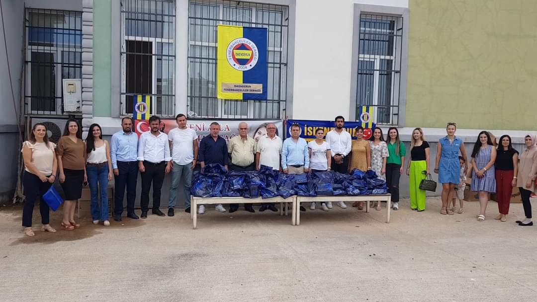 İskenderun Fenerbahçeliler Derneği yönetim kurulu, sosyal faaliyetler projesi kapsamında İskenderun’da bulunan Şehit Aybüke Öğretmen Anaokulu’nda okuyan minik öğrencilere 200 adet kırtasiye yardımında bulundular.