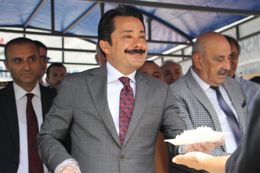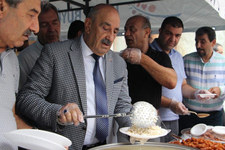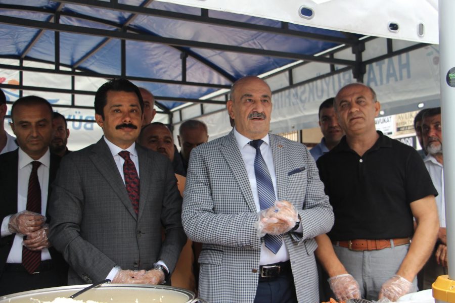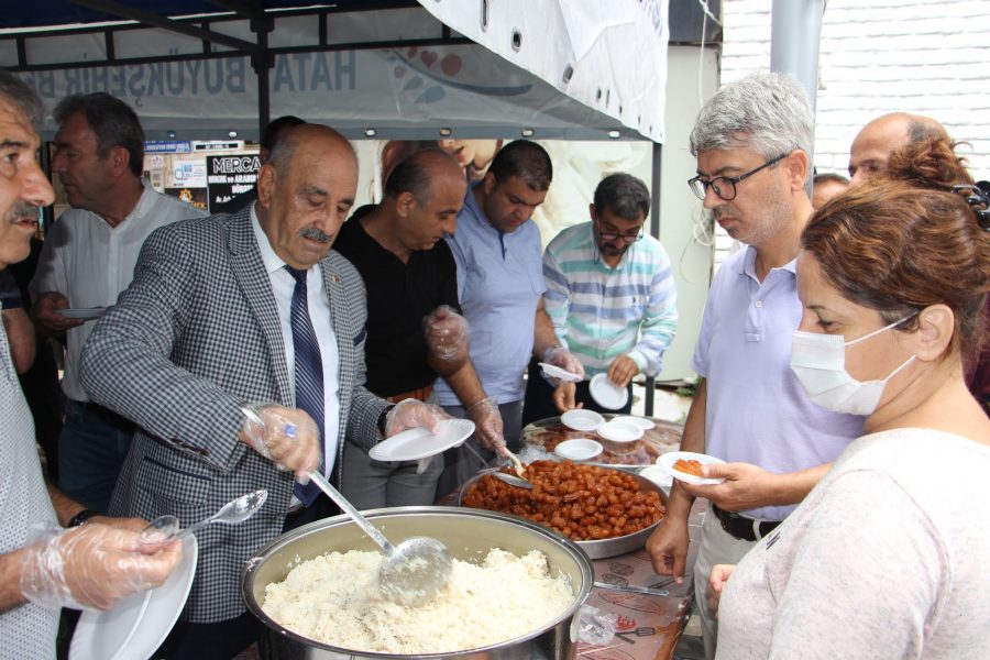 İskenderun Kuyumcular Saatçiler Çiçekçiler ve Fotoğrafçılar Odası Başkanı Uğur ve Yönetim Kurulu üyeleri, kuyumcular çarşılarının önünde tavuklu pilav, ayran ve tatlı dağıttı.