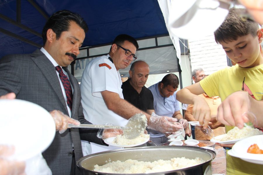 İskenderun Kuyumcular ve Saatçiler Odası tarafından kuyumcular çarşılarının önünde düzenlenen Ahilik Pilavına coşku ve bereket kattı. 7’den 70’e tüm vatandaşlar ve öğrenciler, ücretsiz Tavuklu Pilav, ayran ve tatlıyı memnuniyetle tükettiler.
